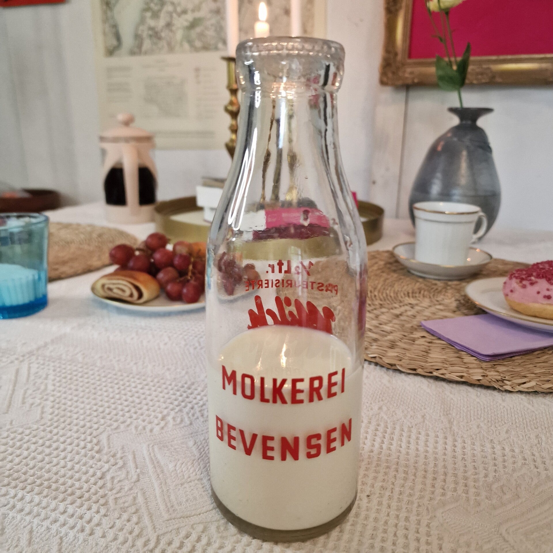 antike Milchflasche, 1/ Ltr. pasteurisierte Milch, Molkerei Bevensen.Milch, Quelle der Gesundheit.Höhe 21 cm