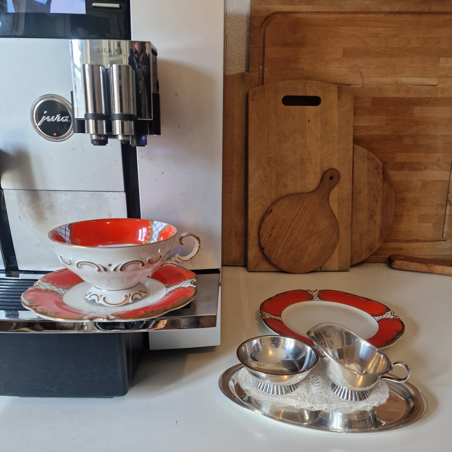 Sammeltasse, leuchtendes orangerotes Dekor