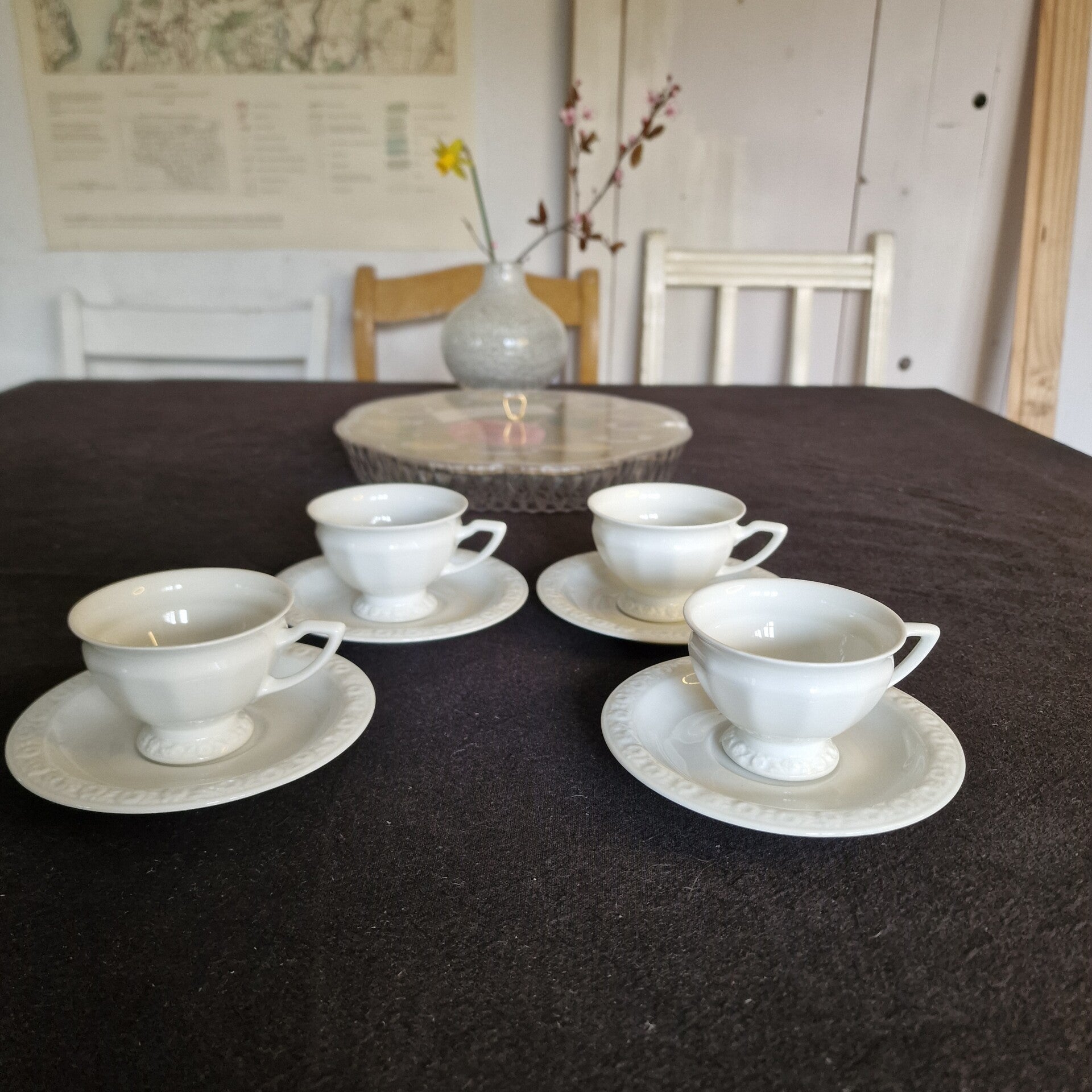 4 Mokkatassen, Rosenthal Maria Weiss.Tasse Durchmesser 7,50 cm, h= 5 cm, Untertasse Durchmesser 12,50 cm.